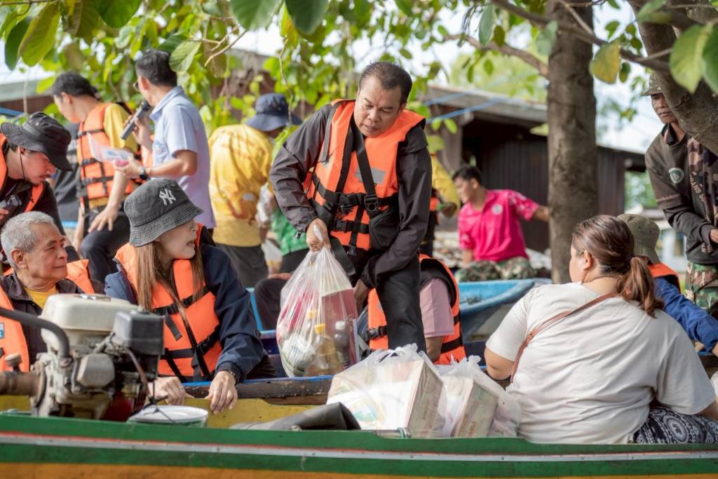 น้ำท่วมแจกถุงยังชีพ นายก อบจ. ร่วม นายก อบต.พระนอน อบต.วังมหากร ลงเรือมอบถุงยังชีพ ในพื้นที่ หมู่ที่ 9 บ้านห้วยหิน ต.พระนอน
