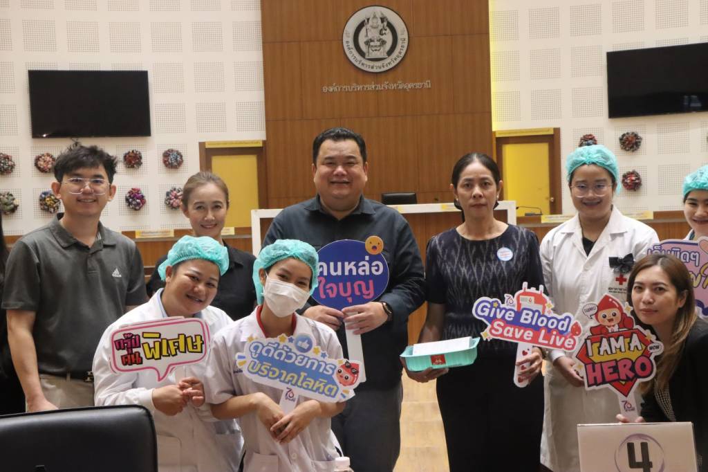 สำหรับการดำเนินการจัดกิจกรรมบริจาคโลหิตในวันนี้ ได้รับเกียรติจาก คุณสรัญญา นอสิทธิ์ (หัวหน้าหน่วยพยาบาล) คุณกุลธิดา ฮวดหลี (หัวหน้าหน่วยพยาบาล) พร้อมคณะเจ้าหน้าที่วิทยาศาสตร์การแพทย์ เจ้าหน้าที่ประชาสัมพันธ์ สภากาชาดไทย จ.อุดรธานี และภาคบริการโลหิตแห่งชาติที่ 6 จ.ขอนแก่น สภากาชาดไทยเป็นความร่วมมือระหว่าง อบจ.อุดรธานี โดย กองสาธารณสุข อบจ.อุดรธานี ร่วมกับ ภาคบริการโลหิตแห่งชาติที่ 6 จ.ขอนแก่น สภากาชาดไทย ดำเนินการตามโครงการ “70 พรรษา 70 ล้านซีซี เฉลิมพระเกียรติสมเด็จพระกนิษฐาธิราชเจ้า กรมสมเด็จพระเทพรัตนราชสุดา ฯ สยามบรมราชกุมารี” เพื่อรณรงค์ให้หน่วยงานภาครัฐ และภาคเอกชนทั่วประเทศ ร่วมกันจัดกิจกรรมบริจาคโลหิต ประจำทุก 3 เดือน ตลอดปี 2568 และเพื่อให้การดำเนินการบรรลุวัตถุประสงค์ตามโครงการ ฯ ดังกล่าวมาข้างต้น นายศราวุธ เพชรพนมพร นายก อบจ.อุดรธานี จึงมอบหมายให้ ผอ.กองสาธารณสุข สนับสนุนบุคลากร เจ้าหน้าที่ และอำนวยความสะดวกด้านสถานที่ในการจัดกิจกรรมบริจาคโลหิต พร้อมให้ฝ่ายประชาสัมพันธ์ เชิญชวนบุคลากรและประชาชนทั่วไปร่วมบริจาคโลหิตในตามวันและเวลาที่กำหนดไว้