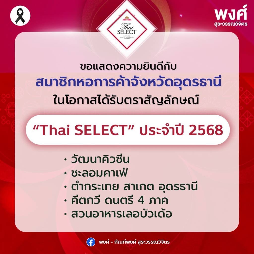 ขอแสดงความยินดีกับสมาชิกหอการค้าจังหวัดอุดรธานี ในโอกาสได้รับตราสัญลักษณ์ “Thai SELECT” ประจำปี 2568
