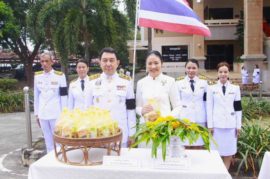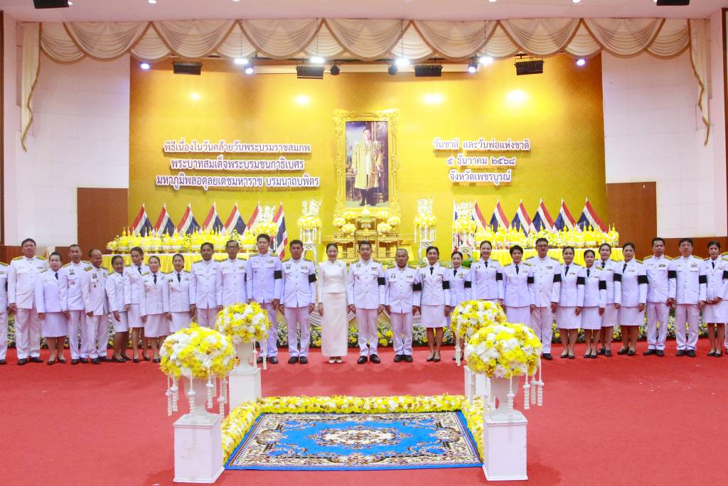 จังหวัดเพชรบูรณ์จัดพิธีสวดพระพุทธมนต์ วางพานพุ่มดอกไม้ถวายราชสักการะ และทำบุญตักบาตร เนื่องในวันคล้ายวันพระราชสมภพ