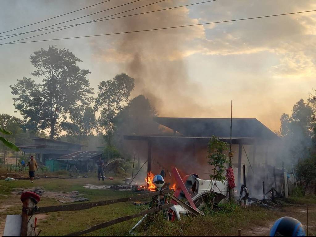 มุกดาหาร -ประชดแม่ไม่ให้เงินซื้อยา! หนุ่มนิคมคำสร้อยคลุ้มคลั่งจุดไฟเผาบ้านตัวเองวอดทั้งหลัง เจ้าหน้าที่คุมตัวดำเนินคดี