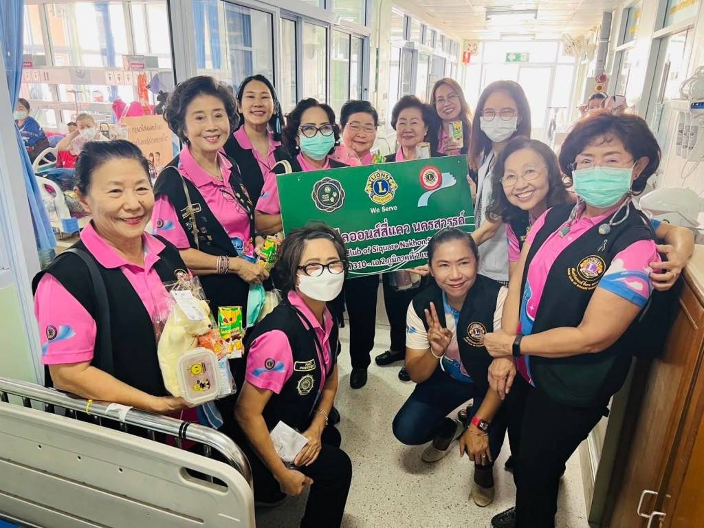 โดยสโมสรไลออนสี่แควนครสวรรค์ มอบเงินช่วยเหลือผู้ป่วยมะเร็งและเบาหวานในเด็ก จำนวน 10 รายๆละ 2,000 บาท รวมเป็นเงิน 20,000 บาท และมอบของขวัญเพื่อให้กำลังใจผู้ป่วยเด็ก จำนวน 50 ราย ที่พักรักษาตัวอยู่ที่โรงพยาบาลสวรรค์ประชารักษ์ นครสวรรค์