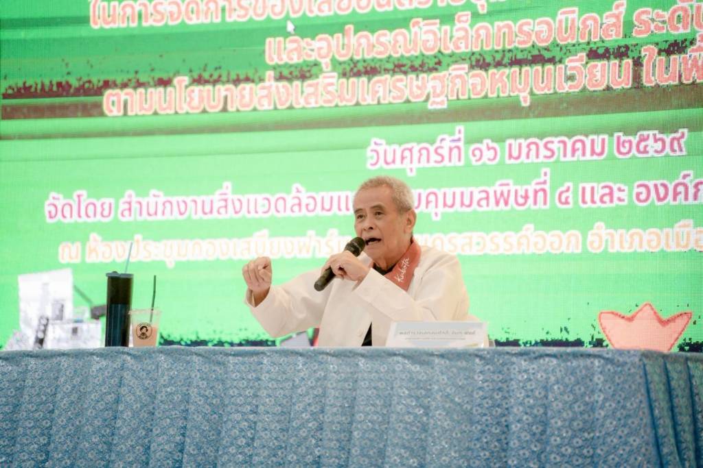 วันที่ 16 มกราคม 2569 เวลา 09.30 น. พลตำรวจเอกสมศักดิ์ จันทะพิงค์ นายก อบจ.นครสวรรค์ เป็นประธานในพิธีเปิดการฝึกอบรมเชิงปฏิบัติการ เสริมสร้างศักยภาพองค์กรปกครองส่วนท้องถิ่น ในการจัดการของเสียอันตรายชุมชนและซากผลิตภัณฑ์เครื่องใช้ไฟฟ้า และอุปกรณ์อิเล็กทรอนิกส์ ระดับจังหวัด ตามนโยบายส่งเสริมเศรษฐกิจหมุนเวียน ในพื้นที่รับผิดชอบ สคพ.4 พร้อมมอบนโยบายการจัดการของเสียอันตรายชุมชนในจังหวัดนครสวรรค์ ประจำปีงบประมาณ พ.ศ. 2569 โดยมี นายปัญญา วรเพชรายุทธ ผู้อำนวยการสำนักงานสิ่งแวดล้อมและควบคุมมลพิษที่ 4 เป็นผู้กล่าวรายงานวัตถุประสงค์การจัดโครงการฯ ณ ห้องประชุมกองเสบียงฟาร์ม ต.นครสวรรค์ออก อ.เมืองฯ จ.นครสวรรค์