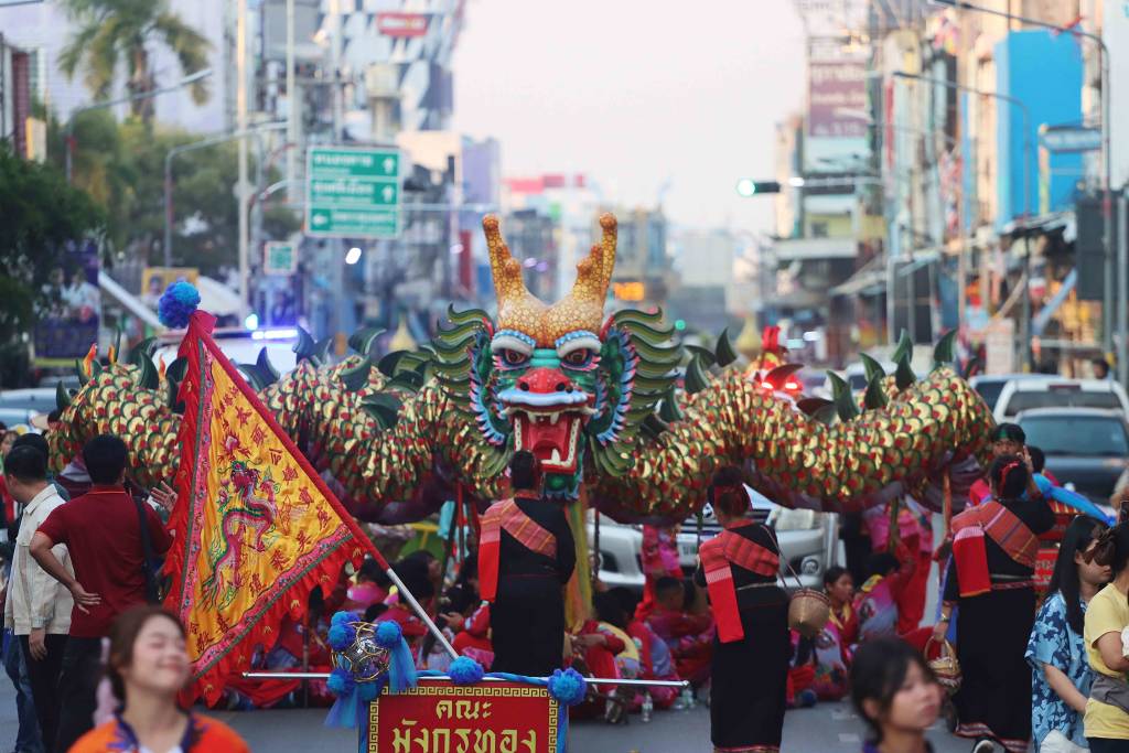 สำหรับขบวนอัญเชิญศาสตราวุธ เป็นไปอย่างยิ่งใหญ่ สมพระเกียรติ จัดโดย เทศบาลนครอุดรธานี ร่วมกับ สนง.วัฒนธรรม จ.อุดรธานี และ มรภ.อุดรธานี กำหนดให้ผู้ร่วมเดินขบวน/ผู้ร่วมพิธี แต่งกายดังนี้ ข้าราชการพลเรือน, ตำรวจ ทหาร อส. เทศบาลนครอุดตรธานี แต่งกายด้วยเครื่องแบบตามเหล่าสังกัด (สวมหมาก)ในกองเกียรติยศ ประชาชนผู้ร่วมเดินขบวน แต่งกายด้วยชุดไทยโทนสีแสด ชุดไทยย้อนยุค สมัยรัตนโกสินทร์ไว้ทุกข์ ติดริบบิ้นสีดำอกซ้าย ในขบวนประกอบด้วย ขบวนคณะผู้บริหารเทศบาลนครอุดรธานี กองเกียรติยศ รถขบวนอัญเชิญ “ศาสตราวุธฯ” และขบวนชาติพันธ์ เคลื่อนออกจาก พิพิธภัณฑ์เมืองอุดรธานี ไปตาม ถนนโพธิ์ศรี ผ่าน วงเวียนห้าแยกน้ำพุ เข้าสู่ วงเวียนพระอนุสาวรีย์พลตรีพระเจ้าบรมวงศ์เธอ กรมหลวงประจักษ์ศิลปาคม