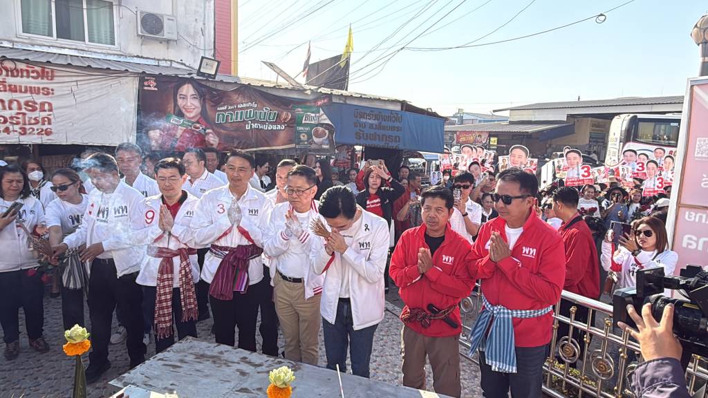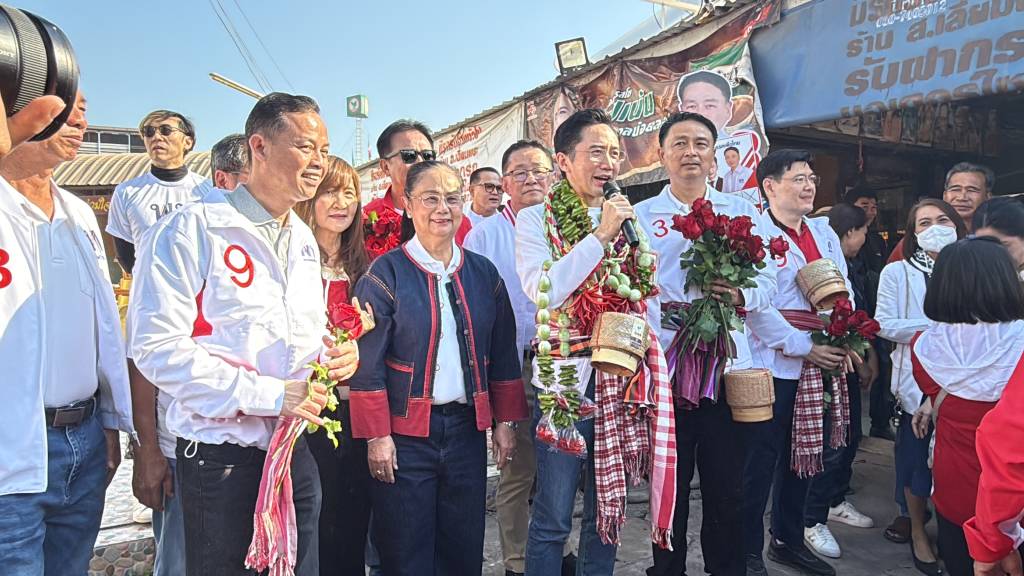 หนองบัวลำภู เพื่อไทยโหมหนัก ดร.เชน ลุยตลาดศรีบุญเรือง เหยียบถิ่น ไชยา พรหมา ช่วยผู้สมัครชิงเก้าอี้ ส.ส.เขต 2 ไม่หวั่นไม่ใช่พื้นที่ของใคร แม่ค้ากรี๊ด เห็นคนหล่อ
