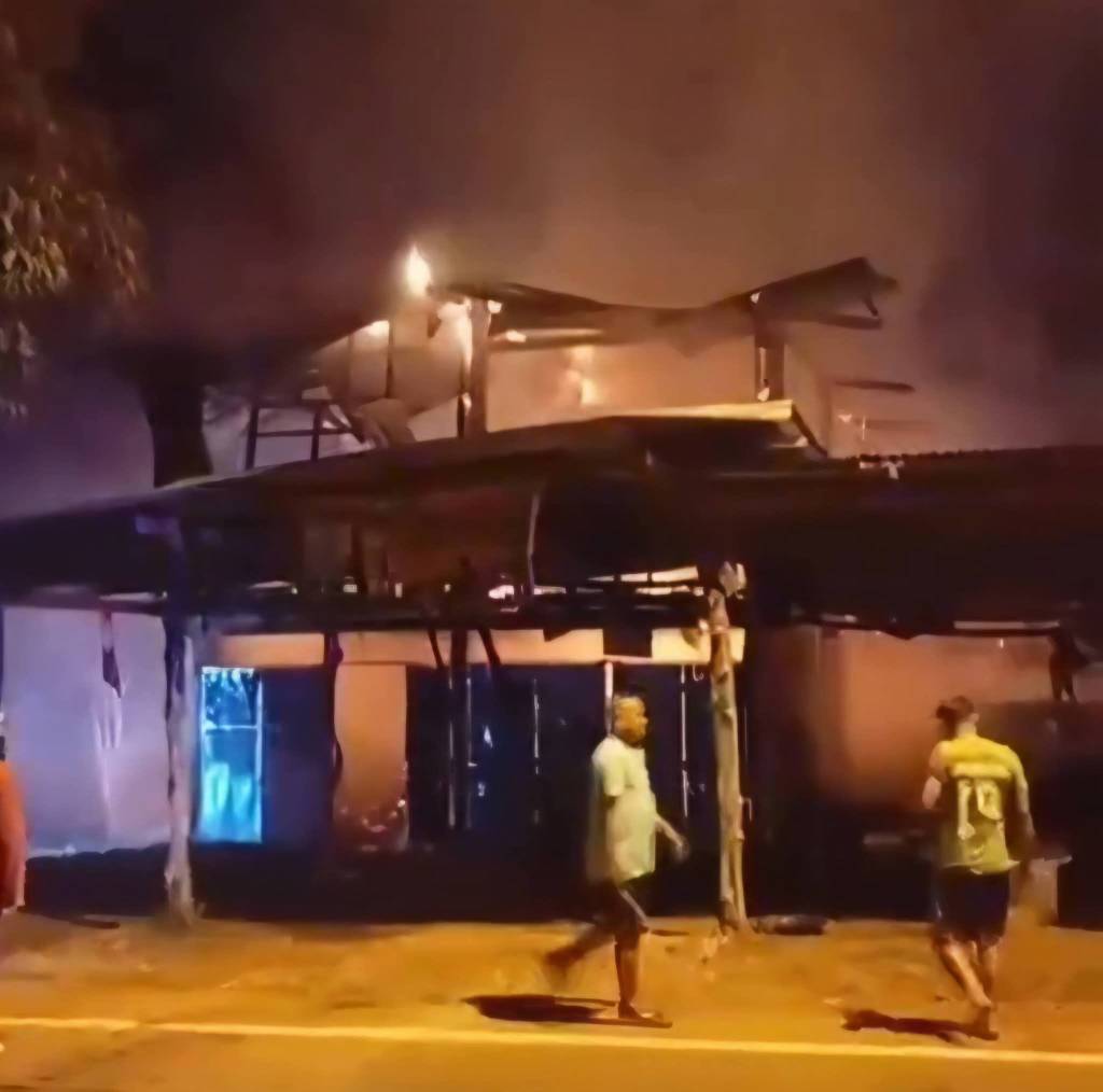มุกดาหาร -ระทึกกลางดึก! ไฟไหม้ดงหลวงบ้านไม้ 2 ชั้น วอดเสียหายเกือบทั้งหลัง