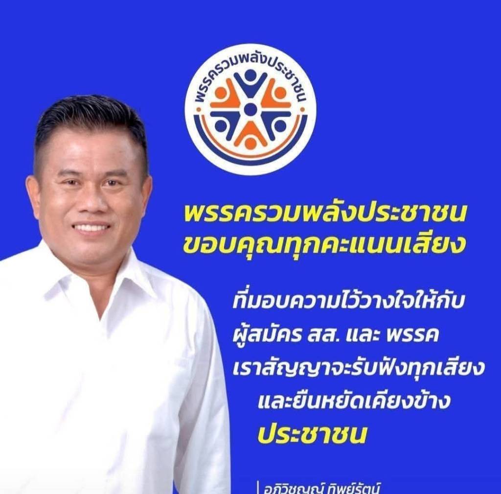 นายอภิวิชญญ์ ทิพย์รัตน์ กล่าวหลังทราบผลการเลือกตั้งว่า ตนในฐานะหัวหน้าพรรครวมพลังประชาชน ซึ่งเป็นพรรคการเมืองน้องใหม่ป้ายแดงใหม่เอี่ยม ขอกราบขอบพระคุณประชาชนทุกๆท่านที่ลงคะแนนมอบความไว้วางใจให้กับทางพรรคด้วยนโยบายดีที่จับต้องได้เกือบสองแสนคะแนนจากทั่วประเทศ จนทำให้ตนซึ่งเป็นผู้สมัคร สส.แบบบัญชีรายชื่อลำดับที่1ได้รับการรับเลือกเข้าไปเป็นผู้แทนราษฎรเข้าทำหน้าที่ในสภา ขอยืนวันว่าจะขอยืนเคียงข้างประชาชนและทำตามนโยบายของพรรคที่ให้ไว้ทุกนโยบาย
