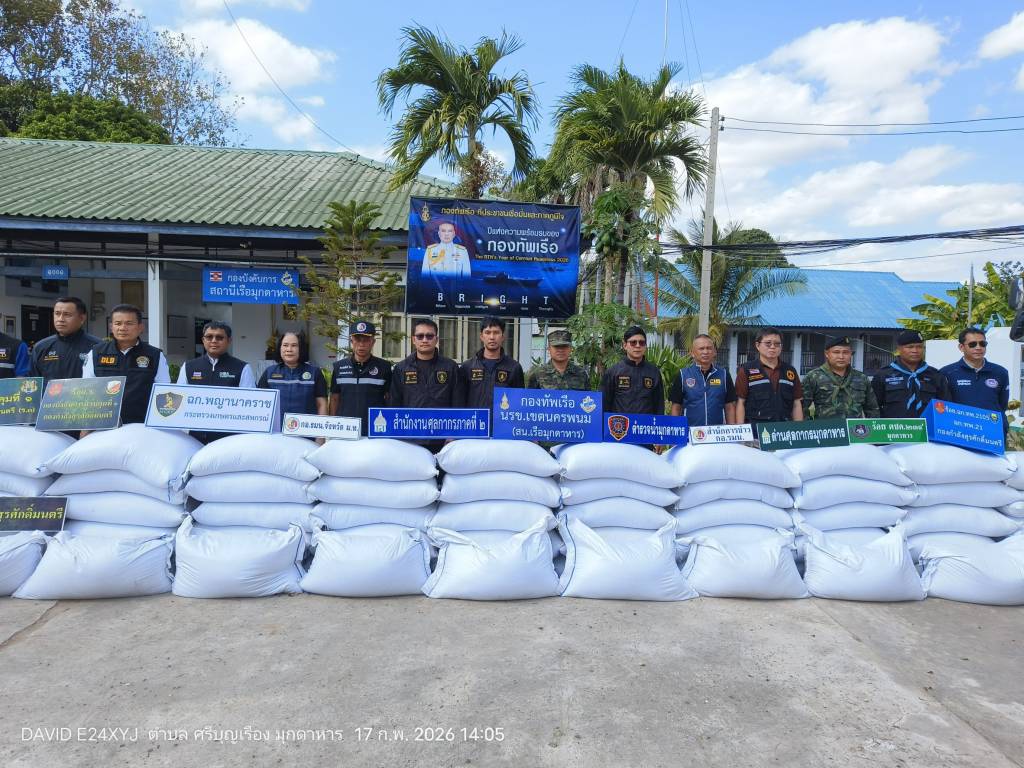 วันที่ 17 กุมภาพันธ์ 2569 ที่สถานีเรือมุกดาหาร น.ท.โอรส พุทธโค หัวหน้าสถานีเรือมุกดาหาร พร้อมด้วยเจ้าหน้าที่ศุลกากร ฝ่ายสืบสวนและปราบปราม ส่วนควบคุมทางศุลกากร สำนักงานศุลกากรภาคที่ 2 ด่านศุลกากรมุกดาหาร สำนักการข่าว กอ.รมน. ร้อย ตชด.234 และตำรวจน้ำมุกดาหาร ร่วมแถลงผลการตรวจยึดข้าวไรซ์เบอร์รี่ลักลอบนำเข้า จำนวนประมาณ 300 กระสอบ น้ำหนักกระสอบละ 50 กิโลกรัม รวม 15,000 กิโลกรัม พร้อมรถบรรทุก 12 ล้อและผู้ควบคุมรถ