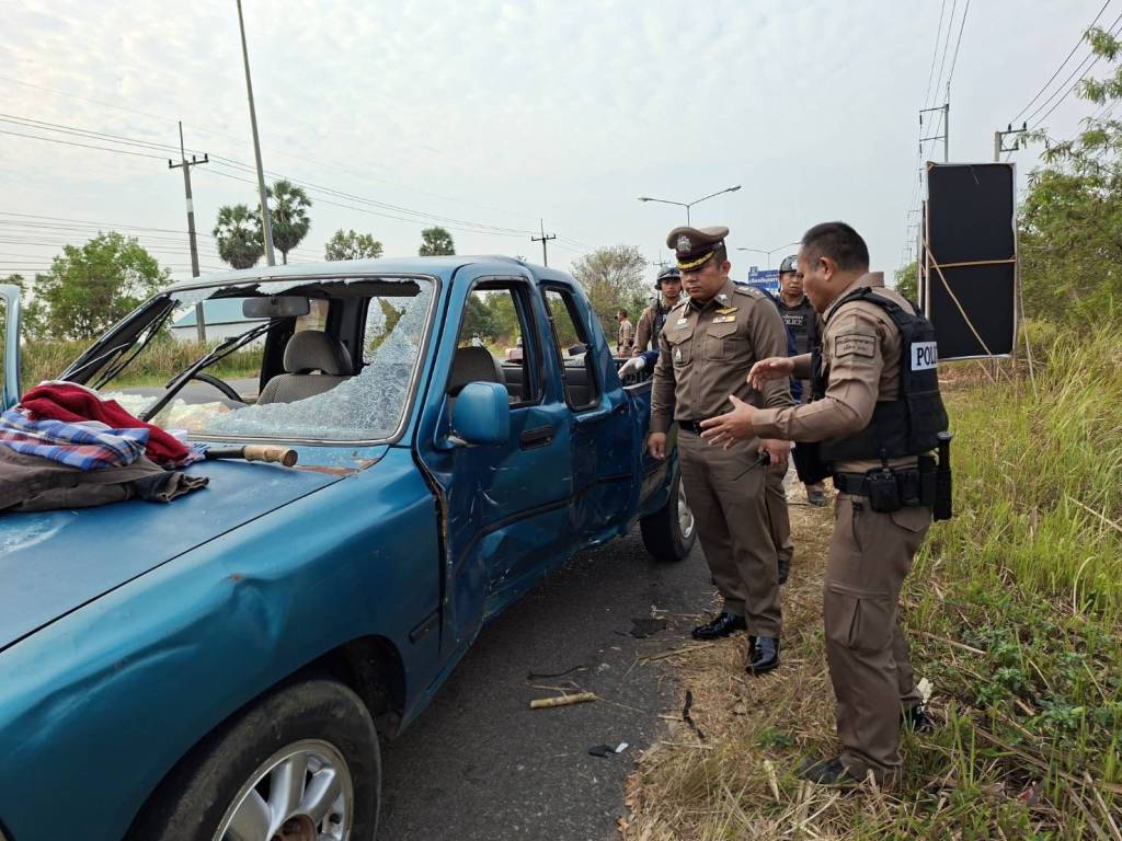 มุกดาหาร -ระห่ำ! ลูกทรพีคลั่งยาทำร้ายพ่อแม่แล้วซิ่งหนีชนรถตำรวจ ก่อนโดนยิงเจาะแขนจนมุมหน้า รร.บ้านนานาถ่อน