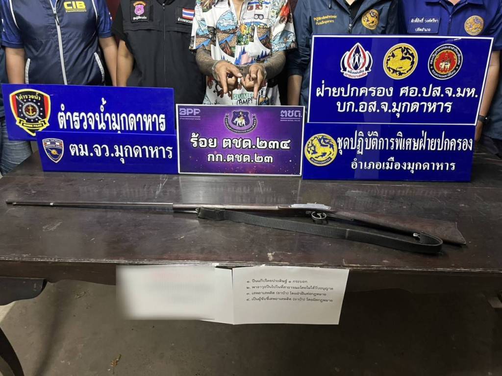 วันที่ 4 มีนาคม 2569 ภายใต้การอำนวยการของ นายนที พรมภักดี นายอำเภอเมืองมุกดาหาร และการสั่งการของนายหมวดเอกดนุภพ รองไชย ปลัดอำเภอ (หัวหน้ากลุ่มงานความมั่นคง) ได้ระดมกำลังชุดปฏิบัติการพิเศษฝ่ายปกครอง “สิงห์เมืองมุก” นำโดย มว.ท.ธัญญารัตน์ เหล่าบุตรศรี ปลัดอำเภอกลุ่มงานความมั่นคง พร้อมสมาชิก อส.ร้อย อส.อ.เมืองมุกดาหาร 2 บูรณาการร่วมกับ ร้อย ตชด.234, ฝ่ายปกครองจังหวัดมุกดาหาร, ตม.จว.มุกดาหาร และตำรวจน้ำมุกดาหาร ลงพื้นที่บ้านป่งเป้า หมู่ 2 ต.โพนทราย อ.เมืองมุกดาหาร หลังได้รับร้องเรียนว่ามีการมั่วสุมและเกี่ยวข้องกับยาเสพติดในพื้นที่ ผลการปฏิบัติสามารถจับกุมผู้ต้องหาได้ 2 ราย ได้แก่ นายอนุชาฯ หรือ “ฮอต” พร้อมของกลางยาบ้า 100 เม็ด และเงินสดล่อซื้อ 400 บาท และนายวีระชาติฯ พร้อมอาวุธปืนไว้ในครอบครองโดยไม่ได้รับอนุญาต