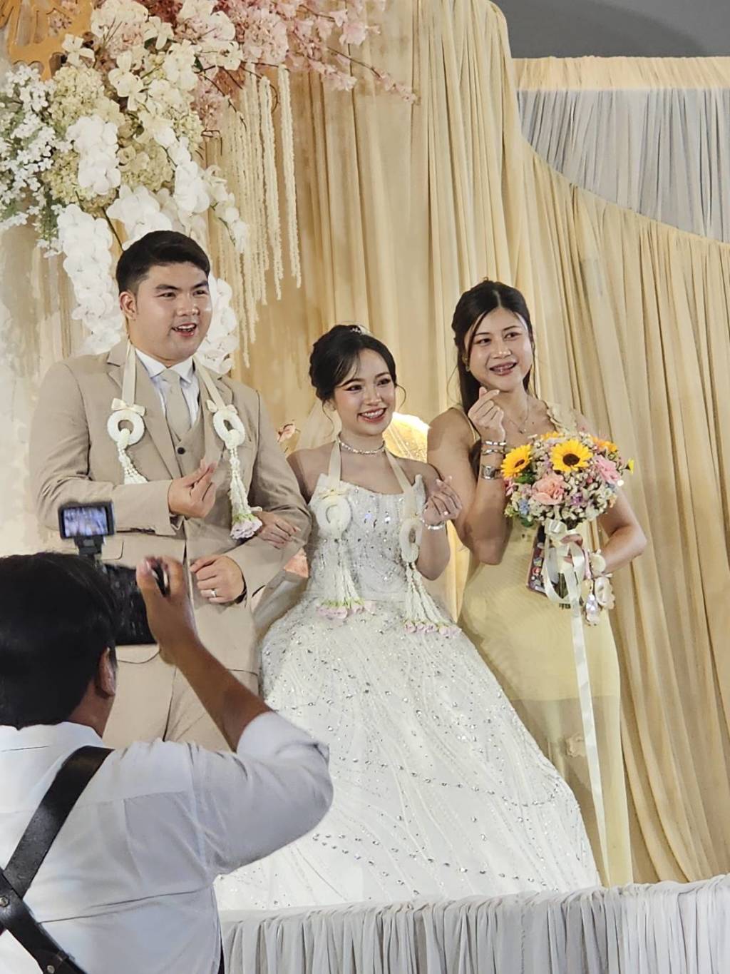 สำหรับเจ้าสาวนางสาวอรปรียา จันทร์ซ้อน หรือน้องมิ้น จบการศึกษาระดับมัธยมศึกษาตอนปลายจากโรงเรียนนครสวรรค์และเข้าศึกษาต่อที่วิทยาลัยพยาบาลสวรรค์ประชารักษ์ ปัจจุบันเป็นพยาบาลประจำที่โรงพยาบาลสวรรค์ประชารักษ์ ส่วนเจ้าบ่าว นายอดิศร เอื้อไพศาล หรือน้องบอส จบการศึกษาระดับมัธยมศึกษาตอนปลายจากโรงเรียนนครสวรรค์และเข้าศึกษาต่อในคณะนิติศาสตร์ มหาวิทยาลัยรามคำแหง ปัจจุบันเป็นเจ้าหน้าที่ สำนักงานปฏิรูปที่ดินจังหวัดนครสวรรค์