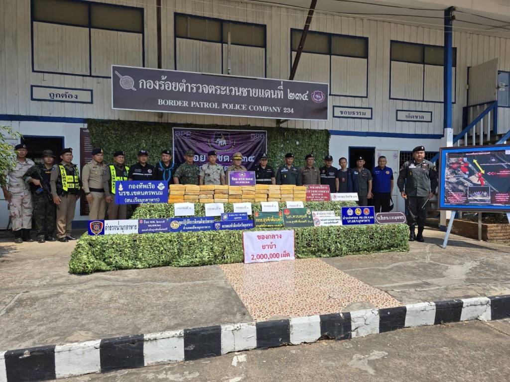 มุกดาหารแถลงข่าวยึดยาบ้า 2 ล้านเม็ดริมโขง! แก๊งขนยานรกเผ่นหนีข้ามลาว ทิ้งของกลางมูลค่า 60 ล้าน
