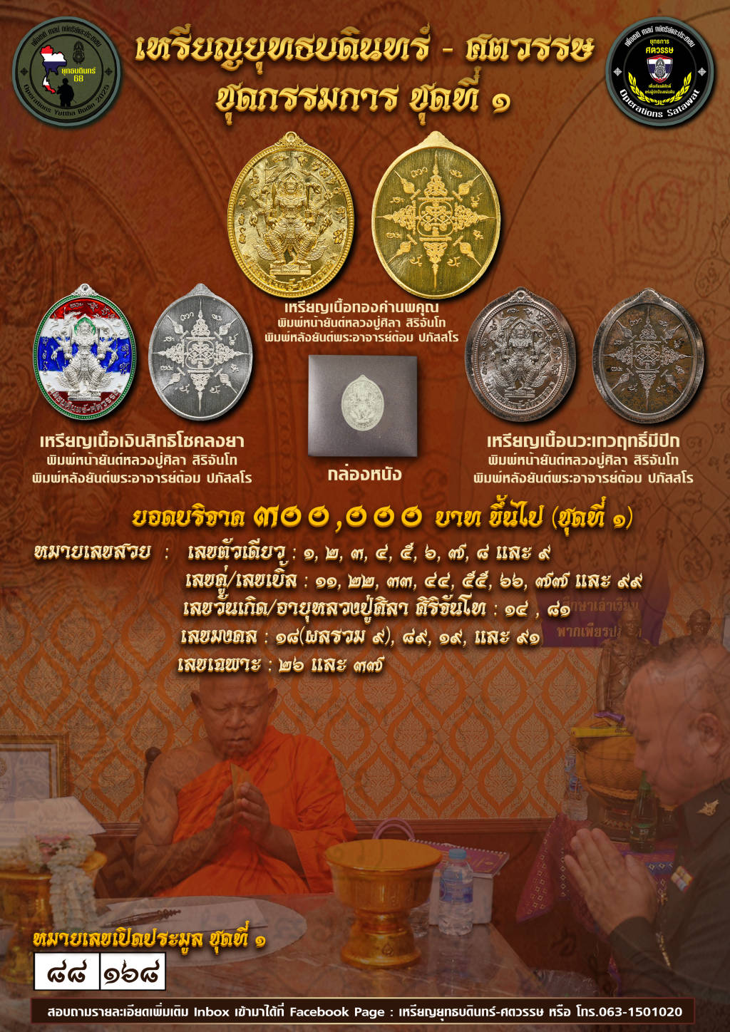 วันพุธที่ 8เม.ย.69 เปิดให้จอง เหรียญยุทธบดินทร์-ศตวรรษ แบ่งเป็น 2 กลุ่ม ดังนี้. *กลุ่มที่1 เป็นชุด 5เหรียญพิเศษ เพื่อเป็นที่ระลึก สำหรับ ผู้บริจาดเข้ากองทุนยุทธบดินทร์-ศตวรรษ โดย
