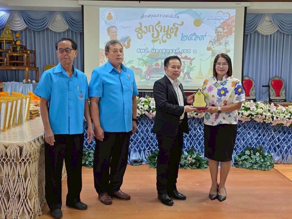 มอบโล่ชมรมวัฒนธรรมไทย สภาวัฒนธรรมจังหวัดนครสวรรค์ มอบโล่ให้โรงเรียน ที่ผ่านการประเมิน "ชมรมวัฒนธรรมไทย" สพป.3 ยอดเยี่ยมต่อเนื่อง