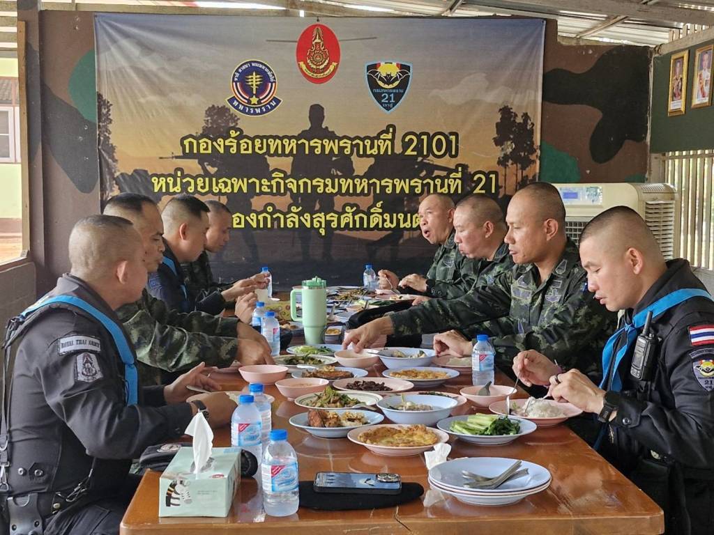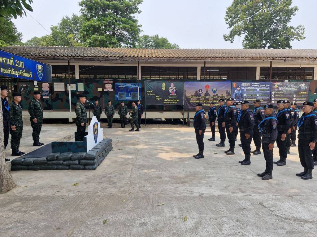 วันที่ 15 เม.ย.69 ที่ บก.ร้อย.ฉก.ทพ.2101 บ.ปากห้วยม่วง ม.2 ต.นาเข อ.บ้านแพง จ.นครพนม พล.ต.มงคล หอทอง ผบ.กกล.สุรศักดิ์มนตรี และคณะลงพื้นที่ตรวจเยี่ยมการปฏิบัติภารกิจของกำลัง ป้องกันชายแดน กองกำลังสุรศักดิ์มนตรี โดยมี พ.อ.ศรณณัฐ นวลมณี ผบ.ฉก.ทพ.21, พ.อ.สุภัทร ชูตินันทน์ ผบ.บก.ควบคุมที่ 1 และ ร.ท.วันชาติ เหมือนปืน ผบ.ร้อย.ฉก.ทพ.2101 ฉก.ทพ.21 พร้อมกำลังพลของหน่วย ให้การต้อนรับ ทั้งนี้ได้ตรวจเยี่ยมให้กำลังใจ “คุมเข้มซีลชายแดน” ป้องกันสิ่งผิดกฎหมายชายแดนไทย-ลาว เพื่อรับทราบข้อมูล สถานการณ์ในพื้นที่ ปัญหาข้อขัดข้องต่างๆ ของหน่วยในพื้นที่ เน้นย้ำงานตามนโยบาย ในการดำเนินการแก้ไขปัญหายาเสพติด บูรณาการด้านการข่าวกับทุกภาคส่วน เพิ่มมาตรการป้องกันอย่างเข้มงวด ในการสกัดกั้น การเฝ้าตรวจและป้องกันชายแดน การจัดระเบียบพื้นที่ และการแก้ไขปัญหาความมั่นคงในพื้นที่ชายแดน เพื่อป้องกันและเฝ้าระวัง การลักลอบนำเข้ายาเสพติด จากขบวนการค้ายาเสพติดข้ามชาติ และสิ่งของผิดกฎหมาย ตลอดจนแรงงานต่างด้าวที่ลักลอบเข้าเมือง ผิดกฎหมาย คุมเข้มการป้องกันเฝ้าระวัง ทั้งทางบกและทางน้ำ ตามจุดเสี่ยงจุดล่อแหลม ช่องทางธรรมชาติ ตามแนวชายแดน และการประสานความร่วมมือกับประเทศเพื่อนบ้าน รวมไปถึงการป้องกันและปราบปรามกลุ่มมิจฉาชีพหรือสแกมเมอร์ (Scammer) รวมไปถึงการให้การช่วยเหลือพี่น้องประชาชนที่ได้รับความเดือนร้อน ในทุกมิติ ในพื้นที่รับผิดชอบ ในโอกาสนี้ ผู้ผบ.กกล.สุรศักดิ์มนตรี ได้มอบสิ่งของบำรุงขวัญให้กำลังป้องกันชายแดนที่ปฏิบัติภารกิจในพื้นที่ชายแดนรับผิดชอบของ กองกำลังสุรศักดิ์มนตรี เพื่อเป็นขวัญกำลังใจในการปฏิบัติหน้าที่ และกล่าวขอบคุณกำลังพลที่ปฏิบัติภารกิจสำคัญในการดูแลแนวชายแดนไทย-ลาว ซึ่งมีความทุ่มเท เสียสละ ปกป้องประเทศชาติจากภัยคุกคาม ยาเสพติด หรือสิ่งผิดกฎหมาย ซึ่งแสดงถึงการปฏิบัติหน้าที่อย่างเต็มกำลังความสามารถ รวมทั้งการช่วยเหลือพี่น้องประชาชนที่ได้รับความเดือนร้อนตามแนวชายแดนไทย-ลาวในทุกสถานการณ์ และรับประทานอาหารร่วมกับกำลังพลสร้างขวัญกำลังใจ สร้างความภูมิใจให้กับกำลังป้องกันชายแดนทุกนาย ที่ปฏิบัติหน้าที่ด้วยความเข้มแข็งอย่างไม่ย่อท้อเพื่อปกป้องอธิปไตยของชาติไทยสืบไป