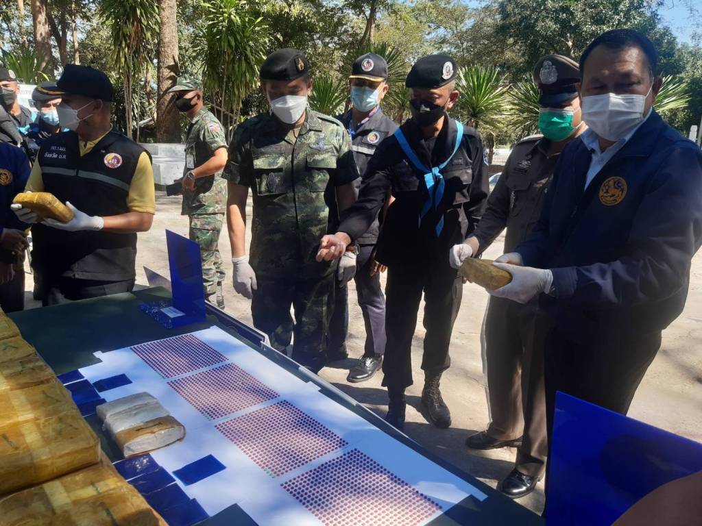 ## กองกำลังสุรศักดิ์มนตรี แถลงข่าวการตรวจยึดยาเสพติดให้โทษประเภทที่ 1 (ยาบ้า) ##