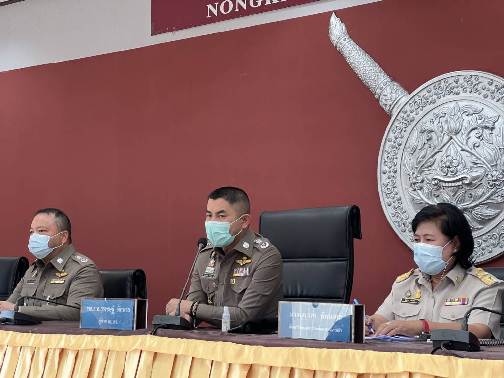 บิ๊กโจ๊ก แถลงข่าวการจับกุมผู้ต้องหาอนาจารและค้ามนุษย์ ที่ตำรวจภูธรจังหวัดหนองคาย ได้ผู้ต้องหาทั้งชาวไทยและชาวต่างประเทศ จำนวน 3 ราย