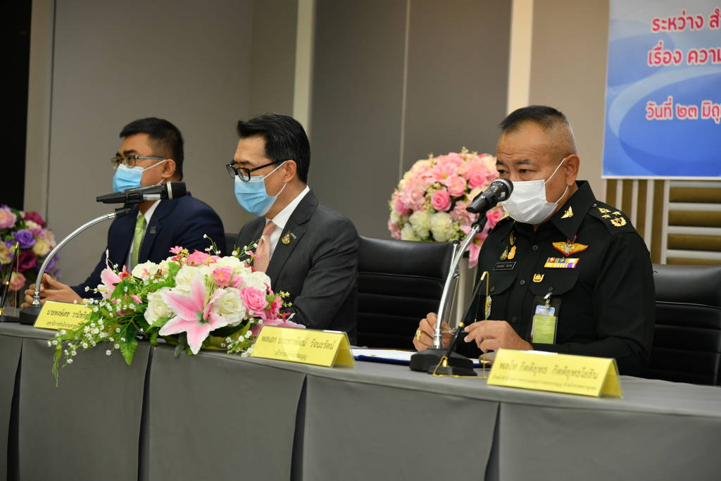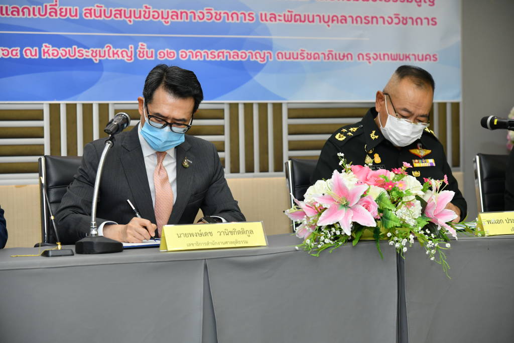 วันนี้ (23 มิถุนายน 2564) เวลา 11.00 น. ณ ห้องประชุมใหญ่ ชั้น 12 อาคารศาลอาญา ถนนรัชดาภิเษก นายพงษ์เดช วานิชกิตติกูล เลขาธิการสำนักงานศาลยุติธรรม และพลเอกประชาพัฒน์ วัจนะรัตน์ เจ้ากรมพระธรรมนูญ ทำการแทนปลัดกระทรวงกลาโหม ร่วมลงนามบันทึกข้อตกลง ความร่วมมือทางวิชาการ ระหว่างสำนักงานศาลยุติธรรม กับ สำนักงานปลัดกระทรวงกลาโหม เรื่อง ความร่วมมือ แลกเปลี่ยน สนับสนุนข้อมูลทางวิชาการ และพัฒนาบุคลากรทางวิชาการ