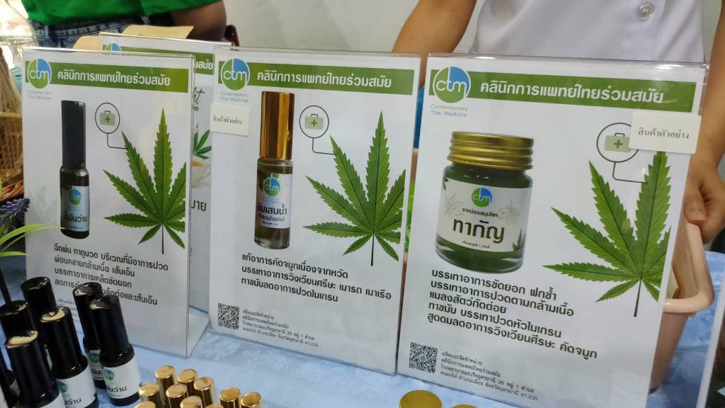 ส่วนประกอบจากกัญชาทีไม่ใช่ยาเสพติดร่วมวางจำหน่ายสาธิตผลิตภัณฑ์สุขภาพ ได้แก่