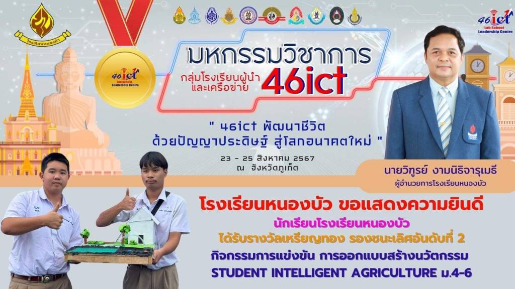 นายวิฑูรย์ งามนิธิจารุเมธี ผู้อำนวยการโรงเรียนหนองบัว อำเภอหนองบัวจังหวัดนครสวรรค์ เปิดเผยว่าโรงเรียนหนองบัวได้ส่งนักเรียนเข้าร่วมการแข่งขันในงาน มหกรรมวิชาการกลุ่มโรงเรียนผู้นำและเครือข่าย46ict " 46ict พัฒนาชีวิตด้วยปัญญาประดิษฐ์ สู่โลกอนาคตใหม่ " ระหว่างวันที่ 23 - 25 สิงหาคม 2567 ณ จังหวัดภูเก็ต ผลการแข่งขันปรากฎว่า นักเรียนโรงเรียนหนองบัว ได้รับรางวัล 3 รางวัล คือ