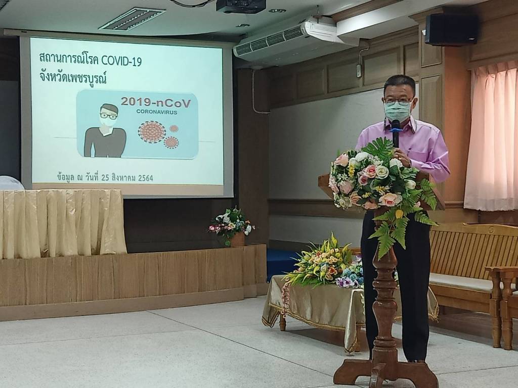 สำหรับสถานการณ์โรคติดเชื้อโควิท-19 ของจังหวัดเพชรบูรณ์ ตั้งแต่วันที่ 1 เมษายน ถึงวันที่ 25 สิงหาคม 2564 มีผู้ติดเชื้อทั้งสิ้น 5,149 คน เสียชีวิต 46 ราย วันนี้มีผู้ป่วยยืนยันรายใหม่ 122 ราย (ผู้ป่วยในพื้นที่ 64 ราย นอกพื้นที่ขอกลับเข้ามารักษา 58 ราย) หายกลับบ้านวันนี้ 61 ราย รวมรักษาหายสะสม 3,209 ราย กำลังรักษาตัวอยู่ในโรงพยาบาลทั้งสิ้น 1,894 ราย ในส่วนของวัคซีนป้องกันเชื้อโควิท-19 จังหวัดเพชรบูรณ์ได้รับวัคซีนมาทั้งสิ้นประมาณ 250,000 โด้ส ขณะนี้ได้ฉีดให้ประชาชนเข็ม1 ประมาณ 197,000 คน เข็ม 2 ประมาณ 64,000 คน และเข็ม 3 ฉีดให้บุคลากรทางการแพทย์ประมาณ 5,000 คน